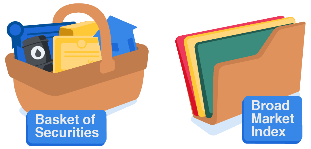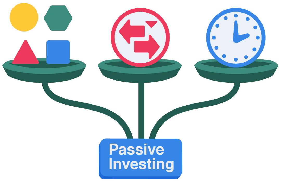 Passive investing involves buying a broad market index or a diversified basket of securities, then holding them for the long term.
